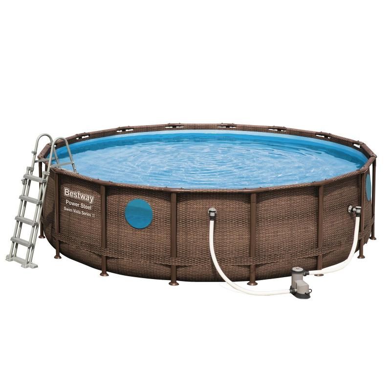Va veti distra de minune cu familia si prietenii in aceasta piscina Bestway Power Steel, Forma rotunda ofera o suprafata mai mare pentru inot sau joaca,