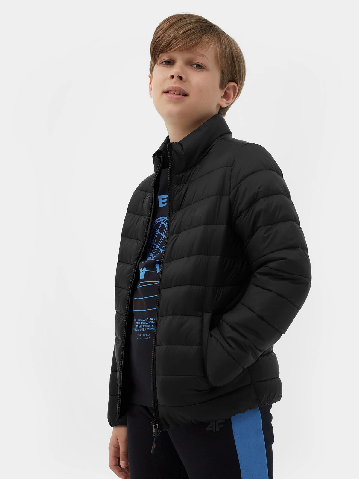 Jachetă matlasată din puf pentru băieți. Este umplută cu umplutură sintetică ușoară care, împreună cu tehnologia 4FWarm, va garanta copilului tău confortul termic în timpul activităților cotidiene. Materialul exterior este impregnat cu un strat hidrofob care încetinește absorbția umezelii.