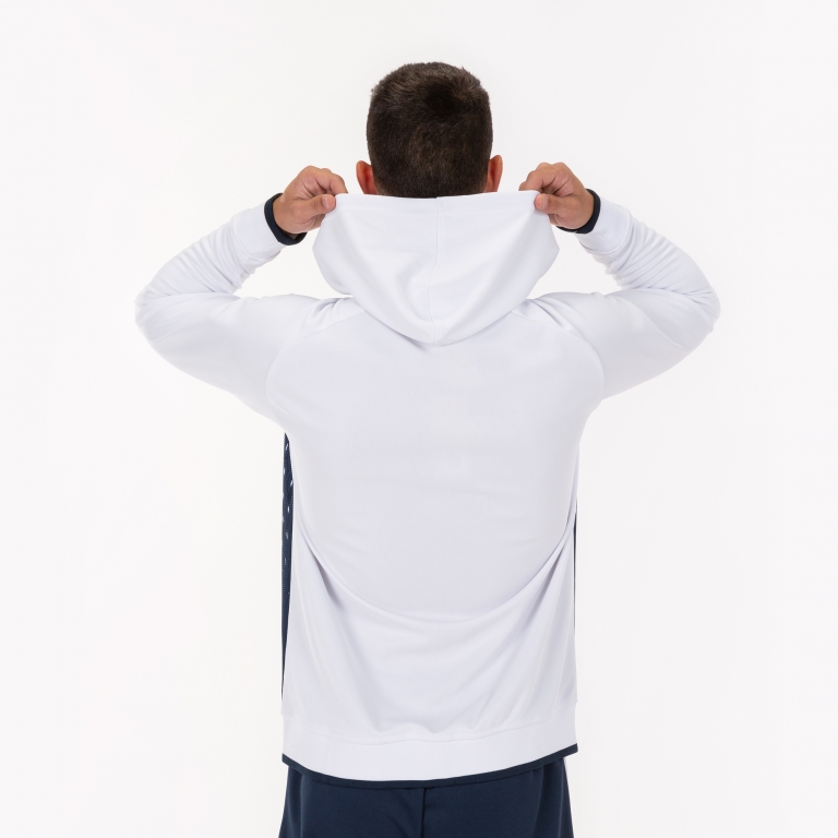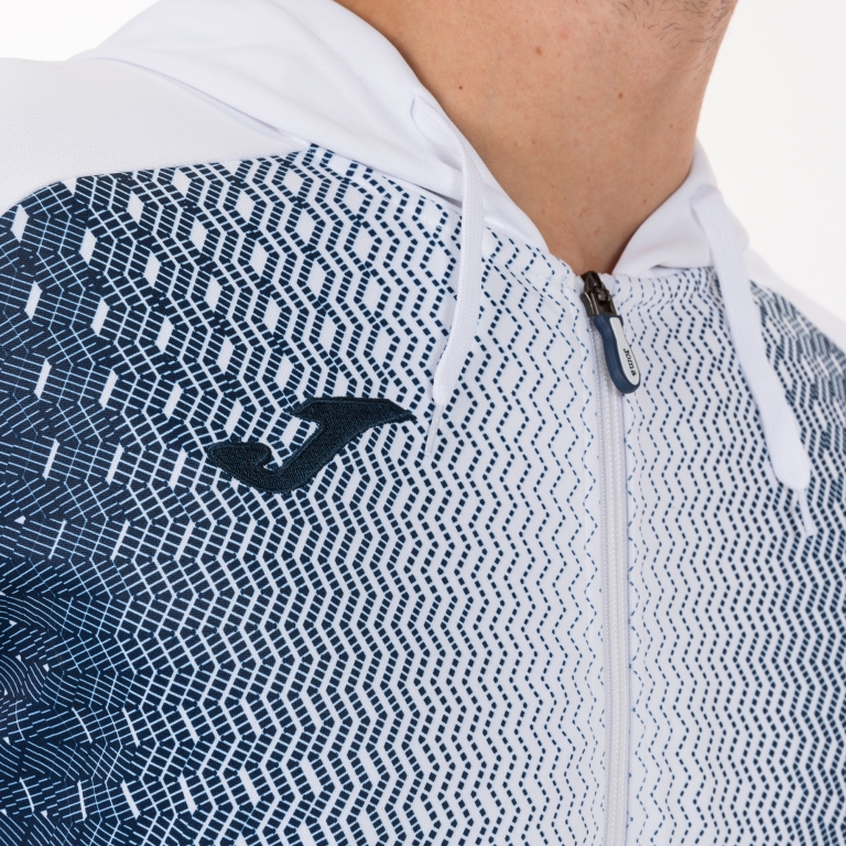 Hanorac cu fermoar pentru bărbați/băieți. Ideal pentru antrenamente sportive, în special fotbal și futsal, în zilele reci. O poti purta si zi de zi, optand pentru un look mai sportiv si mai confortabil, dar fara a pierde confortul. Această jachetă are o închidere cu fermoar complet și o glugă plată reglabilă cu șnur. Are buzunare cu fermoar care asigură depozitarea în siguranță a obiectelor mici (telefon mobil, cheile casei, cheile mașinii...) și stilizează îmbrăcămintea. De asemenea, incorporeaza nervuri la mansete si tiv pentru a oferi un reglaj maxim impiedicand intrarea frigului.A fost realizata cu tesatura rezistenta si confortabila care se adapteaza siluetei sportivului, oferind confort si protejandu-l de frig. Toate acestea garantând libertate totală de mișcare. Designul său este caracterizat de imprimeul inovator sublimat care simulează străluciri pe toată partea din față a îmbrăcămintei. Rezultatul: un efect optic spectaculos. Logo Joma brodat.