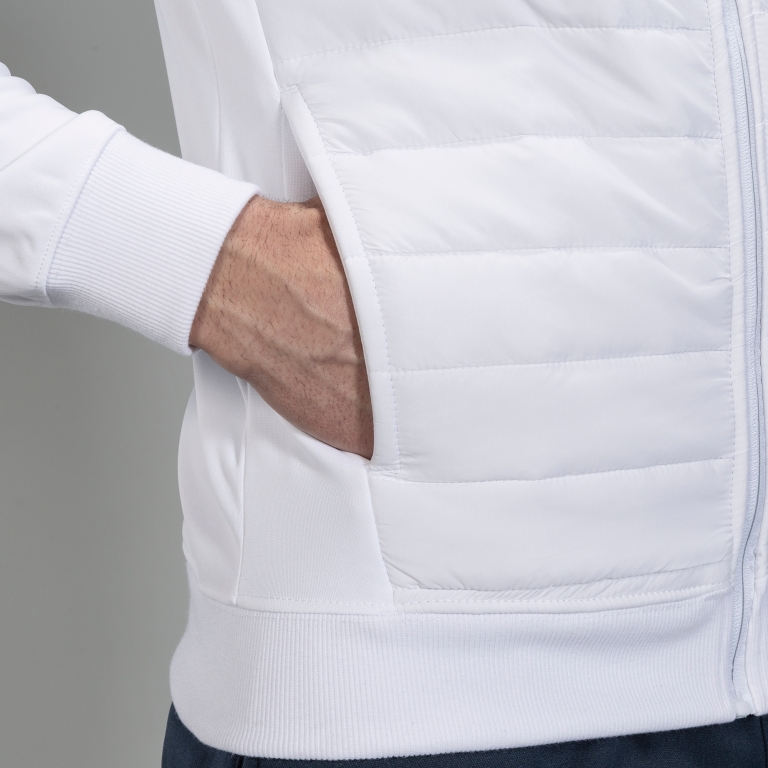 Hanorac cu fermoar pe mijloc. cu buzunare si rib elastic la mansete si in partea de jos pentru reglare optima. Se remarca prin portiunea matlasata din fata, realizata din nylon