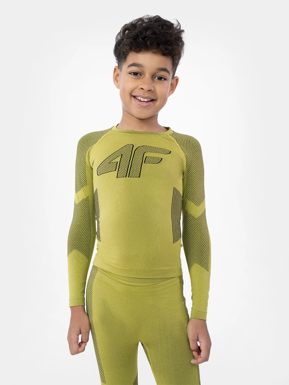 Lenjerie termoactivă fără cusături (complet) pentru băieți. Este confecționată din tricotul elastic fără cusături 4FSkin. Se mulează pe corpul copilului garantând confortul deplin în timpul activităților de iarnă. Am folosit fibrele 4FDry cu uscare rapidă care susțin evacuarea umezelii.