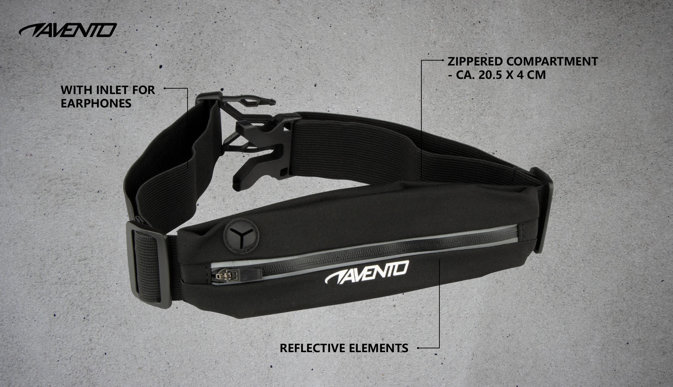 | Caracteristici | • centură elastică reglabilă în talie (până la: aprox. 84 cm) • ușoară blocare rapidă • geantă din lycra cu fermoar, dimensiuni aprox. 20,5 x 4 cm • accente reflectorizante |