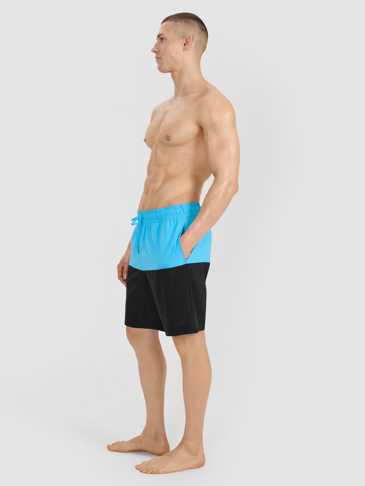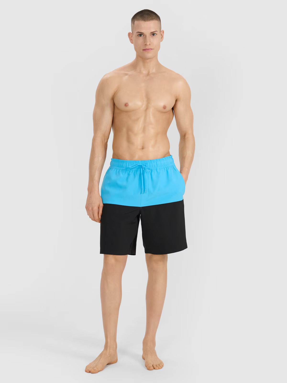 Șortul de baie pentru bărbați este confecționat dintr-un material sintetic cu o grosime medie de 130 de gsm care asigură durabilitate și este ușor de întreținut.