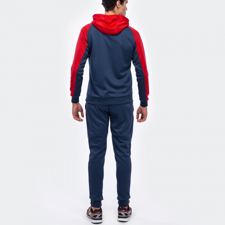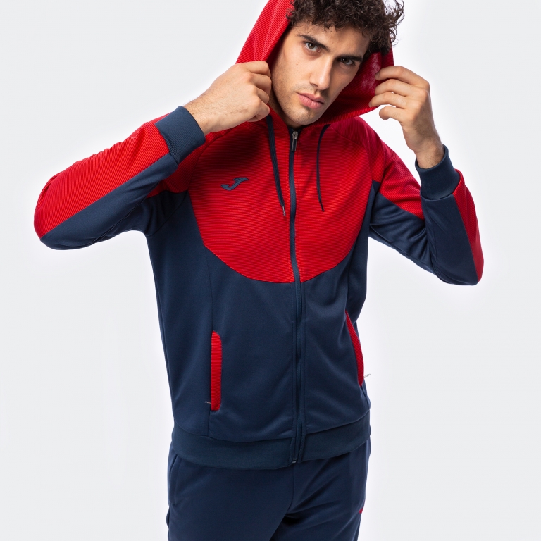 Trening format din jacheta si pantaloni lungi. Jacheta se remarca prin partea din fata in forma de semicerc. Prezinte maneci tip ragla, pentru a favoriza libertatea miscarilor, buzunure cu fermoar, gluga cu snur si tesatura rib la mansete si in partea de jos pentru reglare optima. Pantalonii sunt prevazuti cu buzunare laterale cu fermoar, elastic in talie, snur in interior si tesatura rib la mansete si in partea inferioara pentru o potrivire optima.
