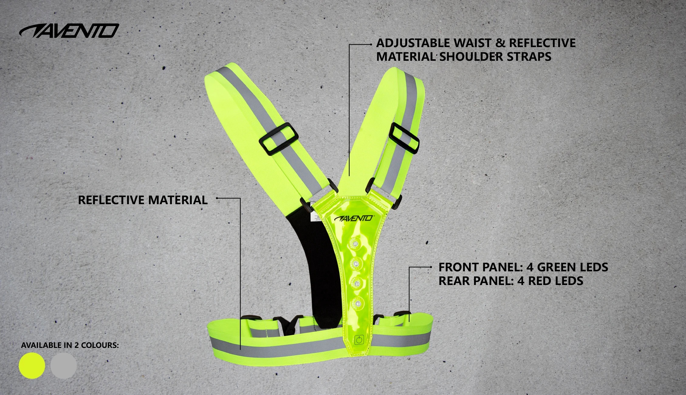 | Caracteristici | • benzi elastice din poliester reglabile cu dungi reflectorizante 3M Scotchlite • panou frontal și spate din plastic • căptușeală din neopren în panouri • panou frontal cu 4 diode LED albe • panou din spate cu 4 diode LED roșii • baterie litiu interschimbabilă în buzunar rezistent la intemperii în față și la spate • material reflectorizant 3M Scotchlite™ în față și în spate • luminile fie clipesc, fie strălucesc continuu |