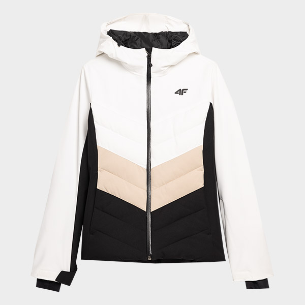 Jachetă de schi membrana 10 000 pentru femei. Are panourile matlasate au umplutura ușoară din poliester care susțin confortul termic. Ca stratul din mijloc am folosit membrana impermeabilă și respirabilă NeoDry 10 000 / 8 000 care garantează protecția optimă împotriva ploii sau zăpezii.