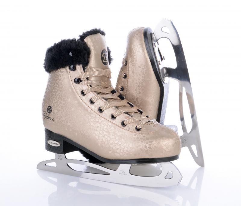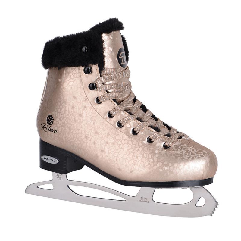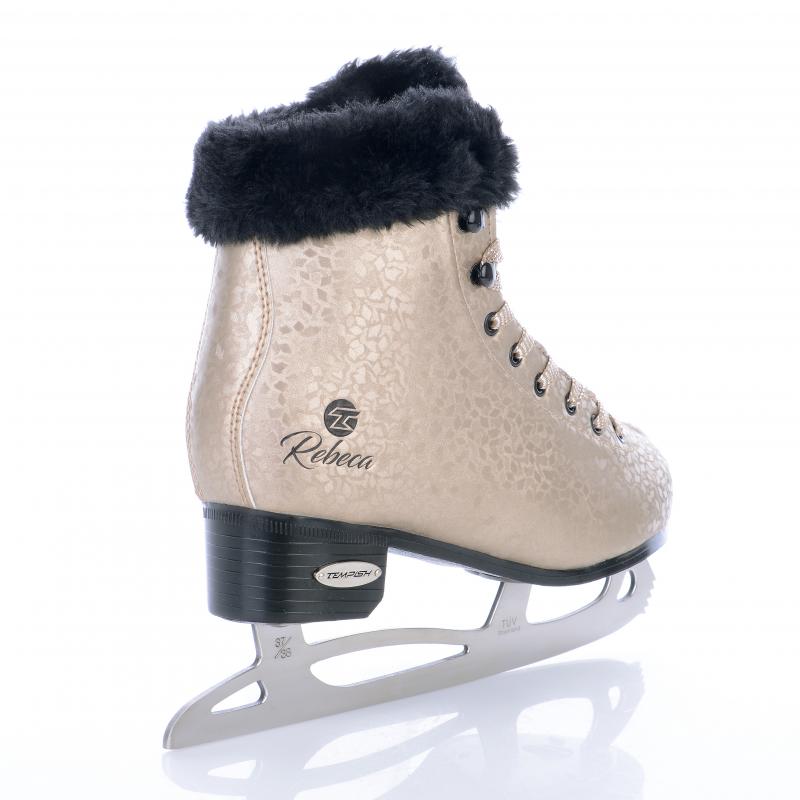 În noua colecie de iarn, salutm i noul model REBECA cu o construcie clasic, conceput pentru patinaj recreativ, sportiv i performant. Cizma a fost realizat dintr-un material durabil din PVC, care are un finisaj foarte frumos, cu efect 3D i va atrage privirile tuturor. Legtura extraordinar de puternic între materialul superior i talp este, de asemenea, un avantaj semnificativ. În interior i la suprafa exist o blan cald i delicat, care are grij de cldur i, în acelai timp, pstreaz cldura în interior chiar i la temperaturi foarte sczute i în perioade lungi de timp pe patinoar sau pe ghea natural. Un bandaj interior în form anatomic, cu memorie DB-120, fixeaz ferm piciorul în cabin i transfer impecabil micarea de la picior la skate. Controlul confortabil al skate-ului ofer o zon de glezn în form anatomic, permiându-le doamnelor s se bucure de ore lungi de patinaj, iar gleznele lor vor fi confortabile. Designul neobinuit al skate-ului va fi completat de o lam elegant i aerisit TEMPISH WAVE, care este uoar, dar mai robust decât lama tradiional.