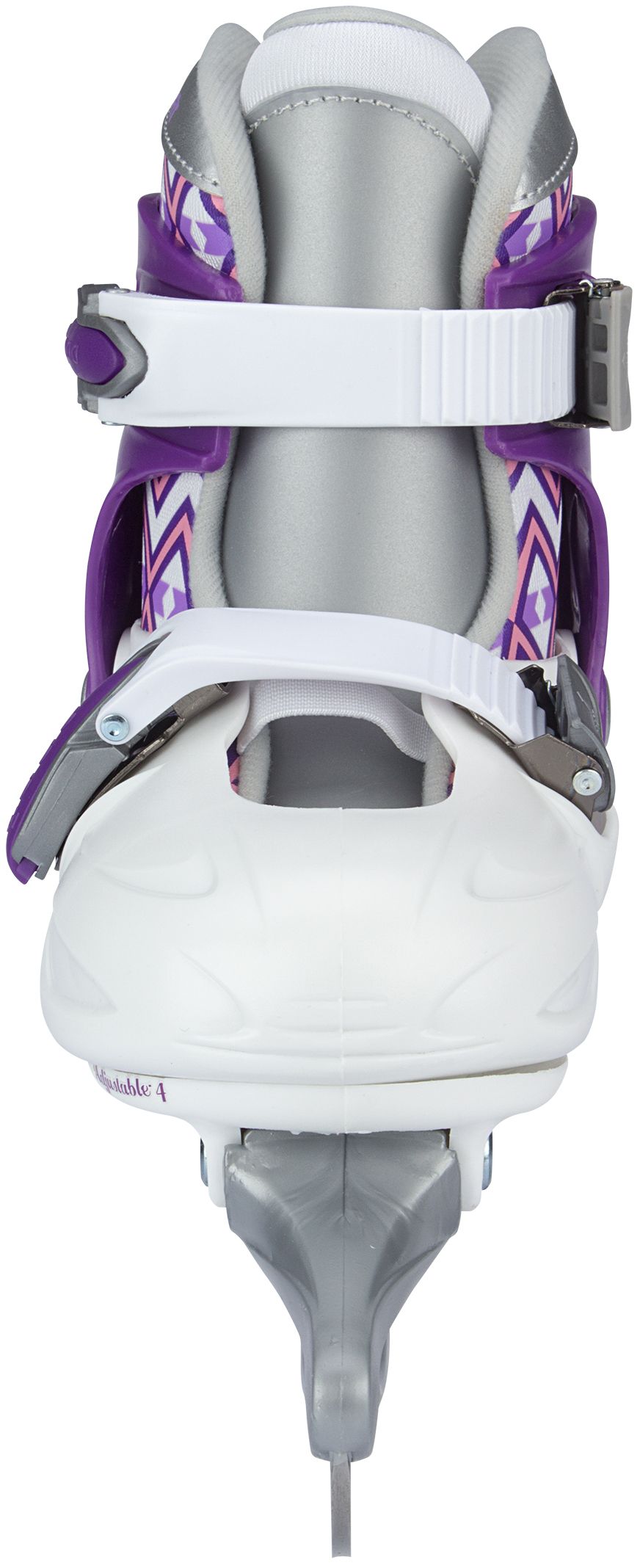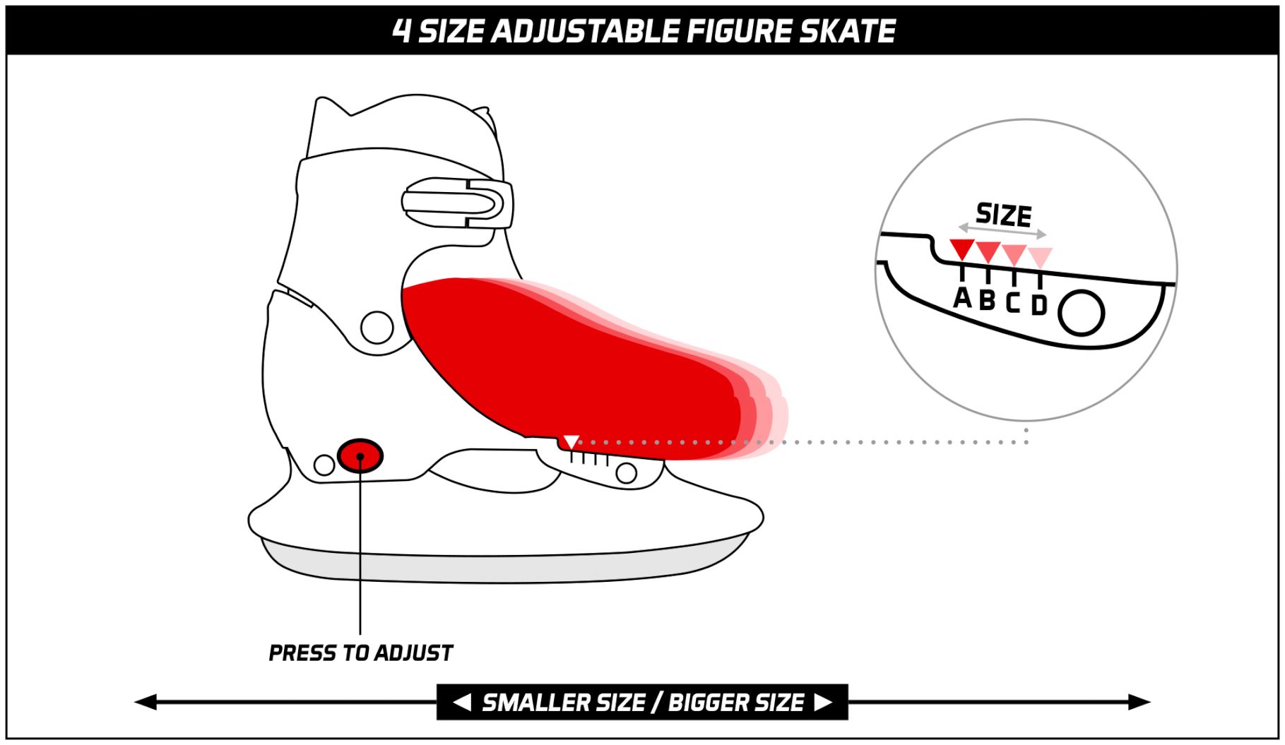 Cizmă preformată TPE cu 3 secțiuni • reglabilă în 4 dimensiuni prin apăsarea butonului la călcâi • 2x blocare rapidă dublă • Cizmă interioară detașabilă din poliester cu căptușeală din poliester • Suport pentru lamă sintetică cu lame de skate din oțel inoxidabil • dimensiuni 27/30 și 30 / 33 nu sunt echipate cu vârfuri • lame au fost pre-ascuțite
