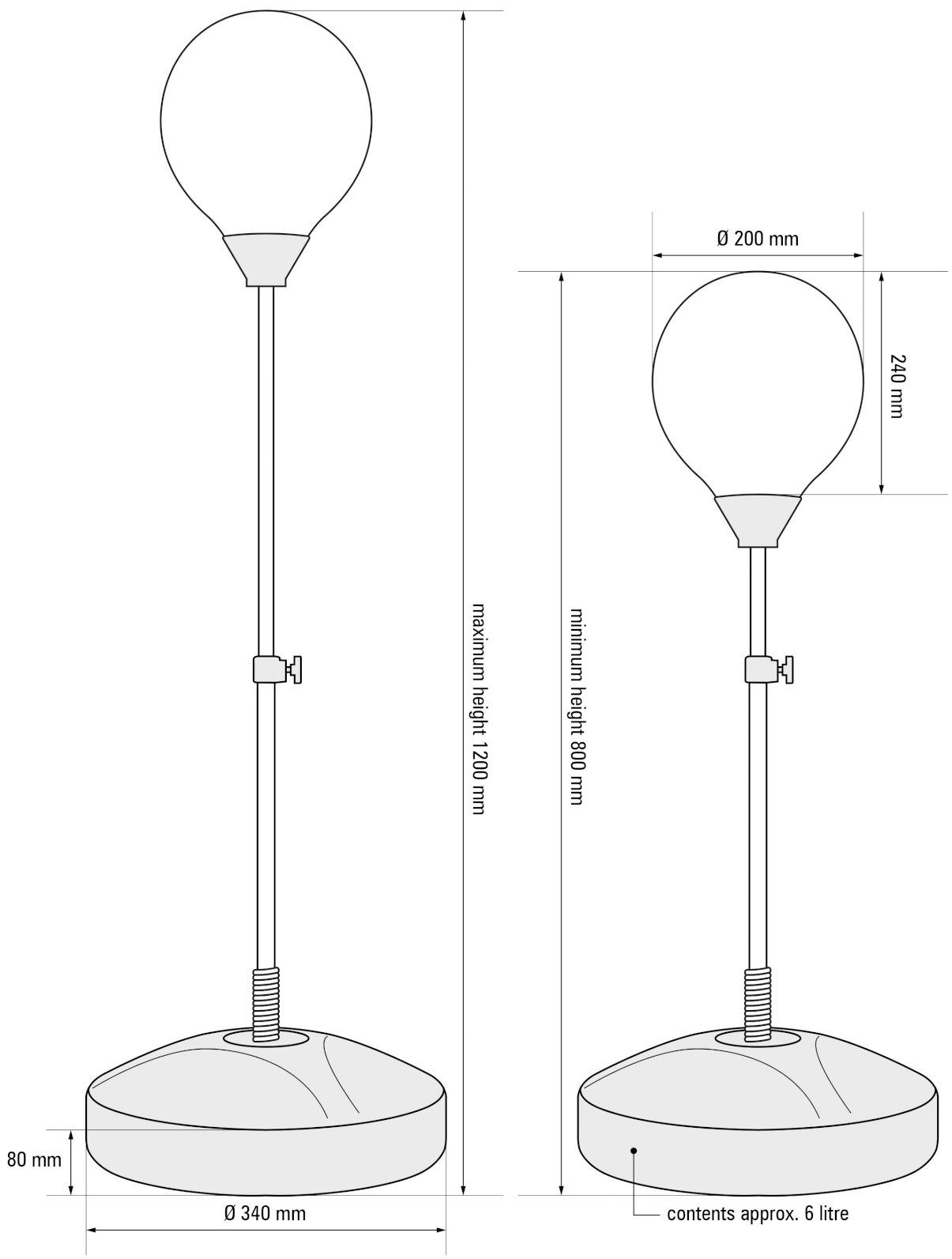 Surprindeți copiii cu acest set de box. Mingea de box pe un suport flexibil este montată pe un arc puternic pe un picior stabil, care poate fi umplut cu nisip sau apă. Poziția verticală poate fi reglată înălțime de la 80 la 120 cm. Mai mult, setul include mănuși de box și o pompă pentru a umfla mingea. Mingă de box - 200 x 240 mm. Piedestal - 340 x 80 mm (capacitate 6 litri). Manusi dein piele sintetica, umplute cu spuma
