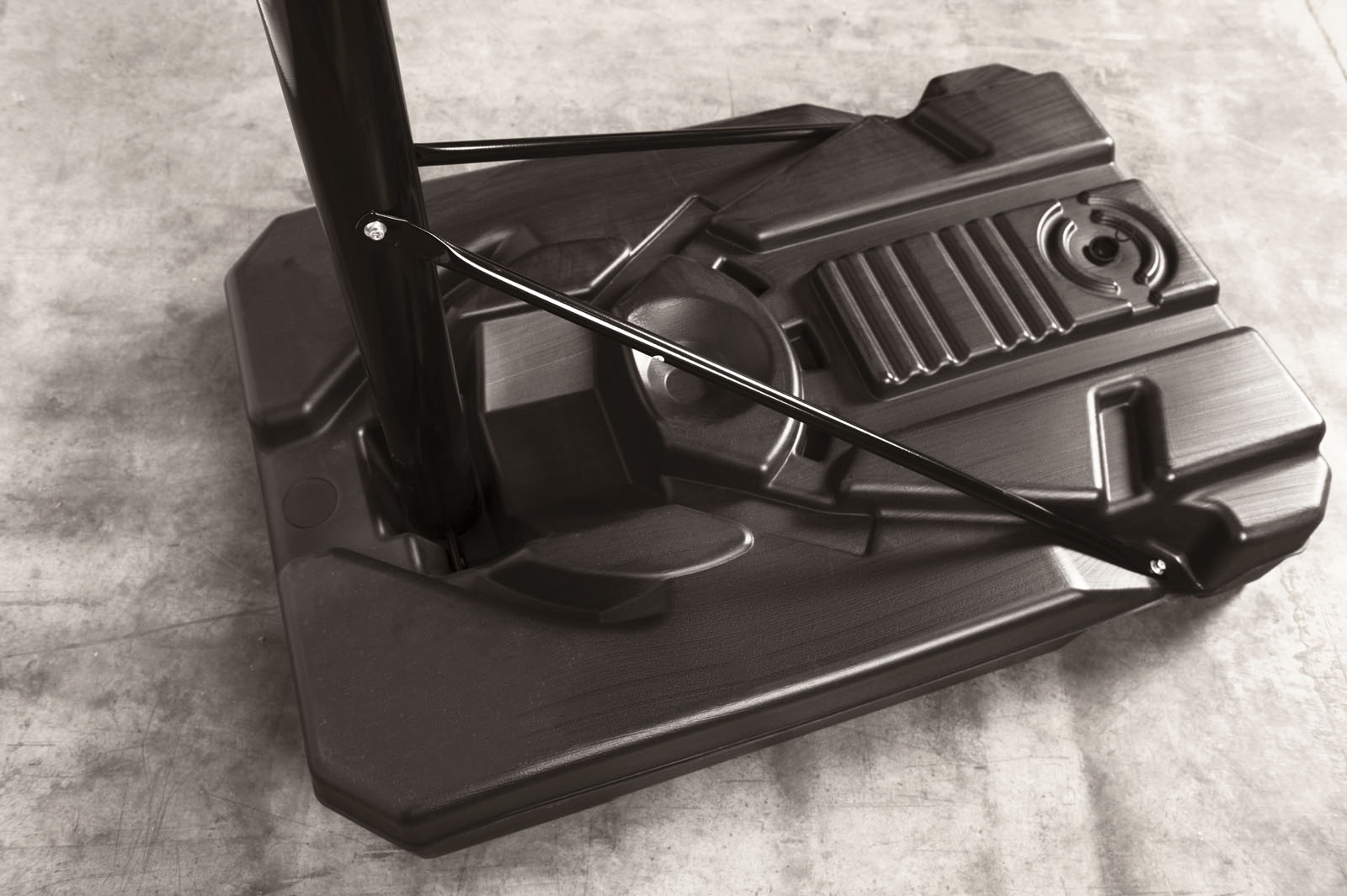 Sistem de baschet robust cu coloană, ușor de transportat, potrivit pentru jucătorii adulți.