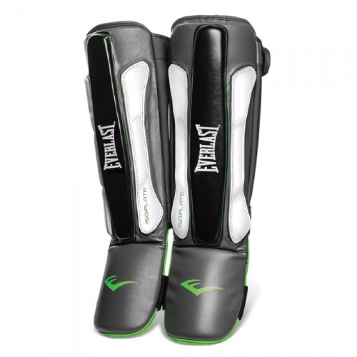 Tibiere Everlast din piele sintetica de calitate, prinderea se face cu benzi Velcro de gamba si banda elastica de talpa. La interior exista spuma de inalta densitate Isoplate, iar pe partea exterioara in zona mediana se afla o suprafata cu rol de absorbtie a socurilor.