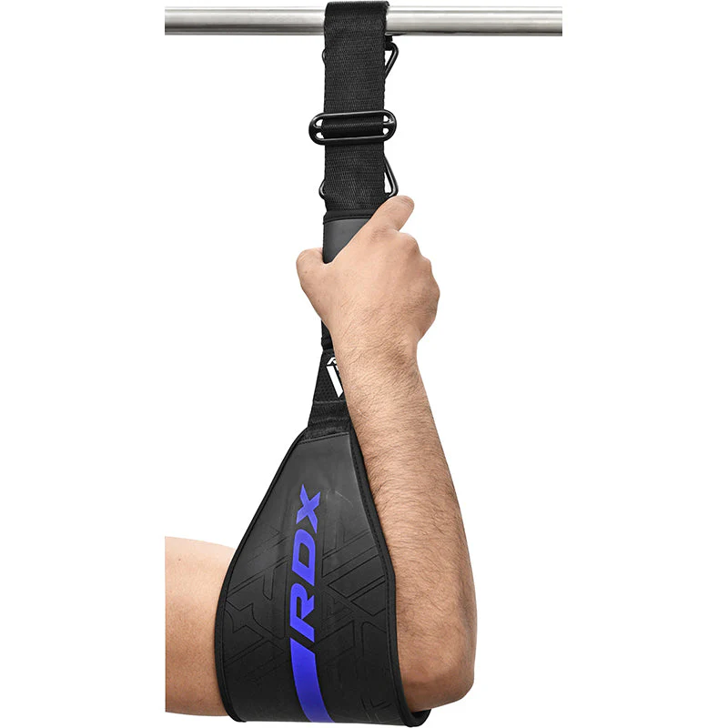 Curelele F6 Ab sunt fabricate din piele indestructibilă N-Tear X Mayahide pentru ca tu să agăți liber și să-ți completezi antrenamentele abdominale fără piedici. Curelele sunt ținute împreună cu cea mai fină țesătură de nailon și cârlige D-Ring cu carabiniere. În plus, este prins la loc folosind sistemul nostru clasic de cârlig și buclă. Această curea de gimnastică RDX F6 Ab este reglabilă folosind un cătuș acoperit cu PVC, ceea ce o face produsul perfect pentru toți pasionații de sală.