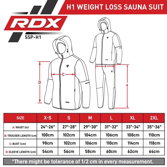 RDX Sports realizează că tehnologia de ultimă oră este necesară pentru ceva la fel de simplu ca reducerea greutății înainte de o competiție. Acesta este motivul pentru care cel mai nou costum pentru saună este simbolul tehnologiei de vârf pentru o funcționalitate optimă. Cultură subțire, design cu închidere cu fermoar este realizat din cea mai fină țesătură Instant Sweat™, care vă ajută să reduceți cu 20% mai multă greutate decât un costum de trening obișnuit. Scapă de greutatea apei ca o a doua piele cu țesătura noastră acoperită cu PU, izolatoare termică, fără miros, rezistentă la vânt și la apă. Manșetele elastice pentru mâini și picioare cu bază pentru jachetă reglează transferul termic, reduc rata de pierdere de căldură, oferind totuși o gamă completă de mișcare. Hanoracul cu șnur și banda de talie a pantalonilor sporesc și mai mult eficiența costumului nostru de compresie fără a compromite funcționalitatea.