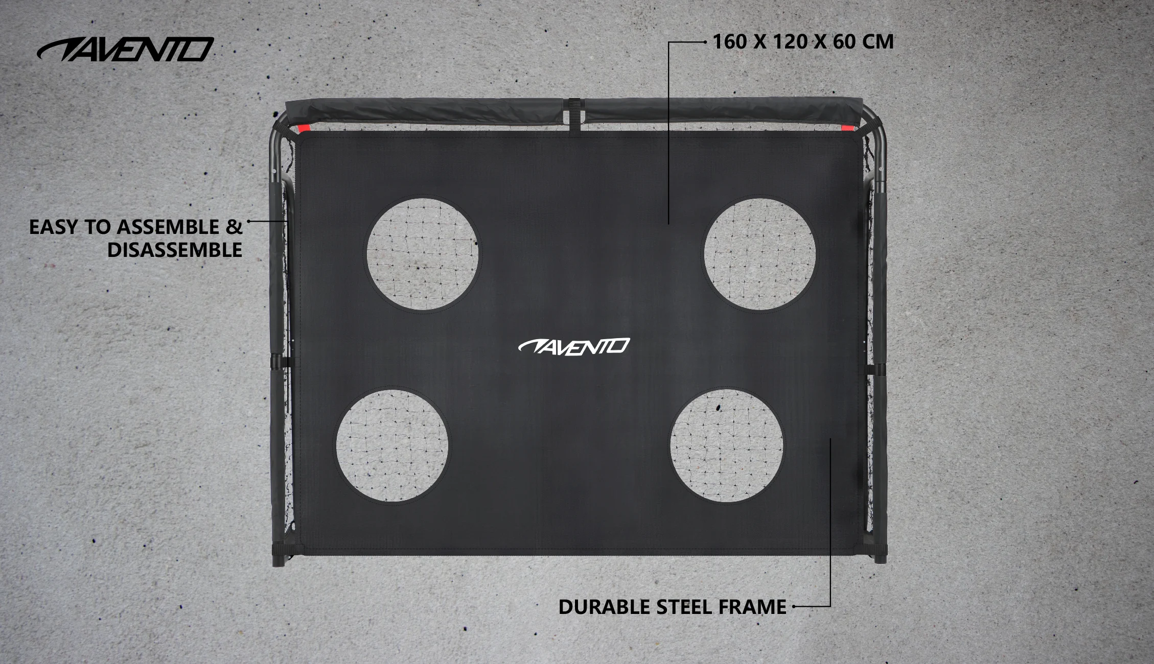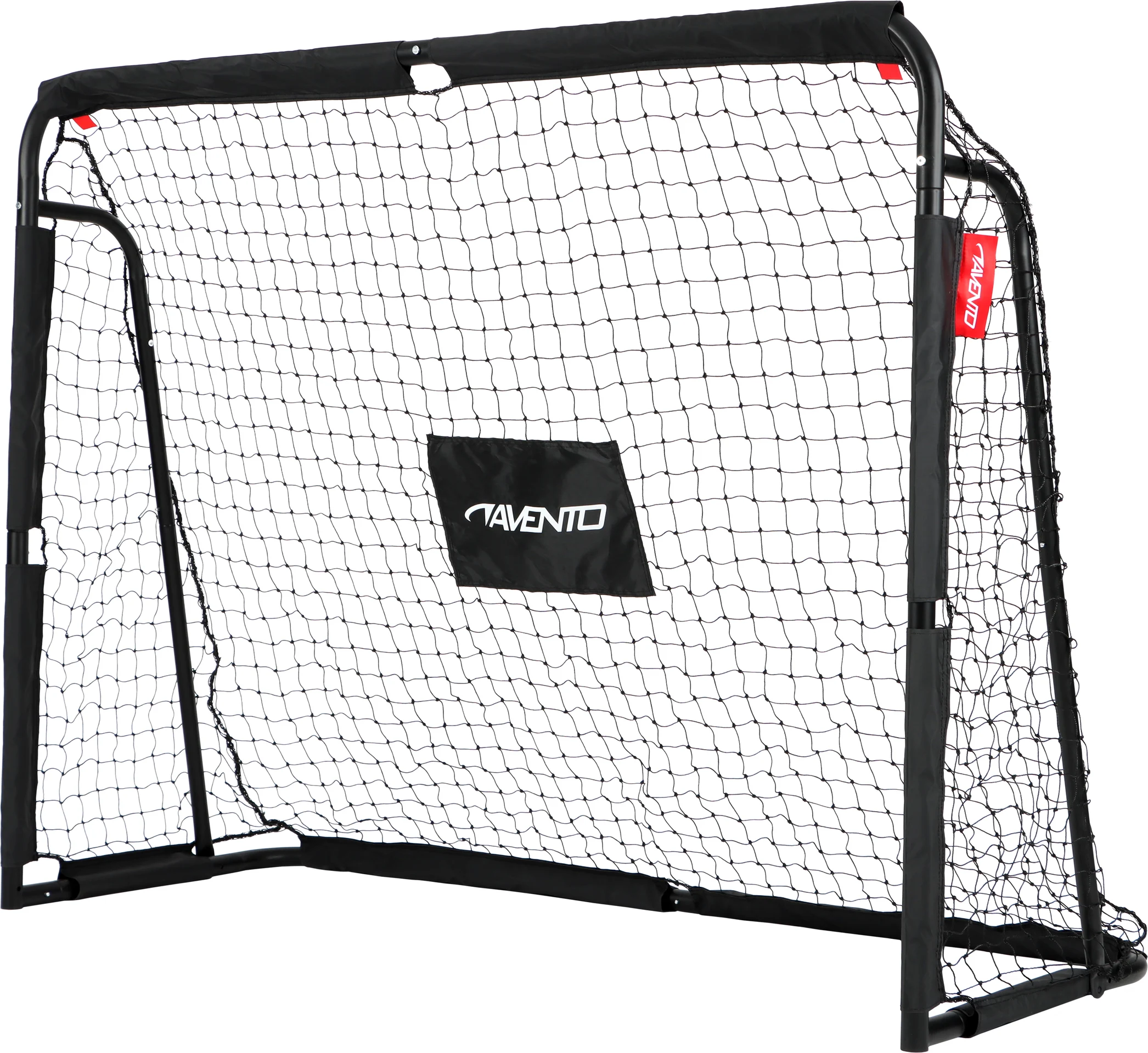 Poartă de fotbal compactă și robustă, fabricată din oțel cu tuburi de 32 mm, finisaj negru mat. Include plasă rezistentă și ecran de țintă cu 4 găuri pentru antrenamente de precizie. Ușor de montat și stabilă datorită tuburilor de ancorare.