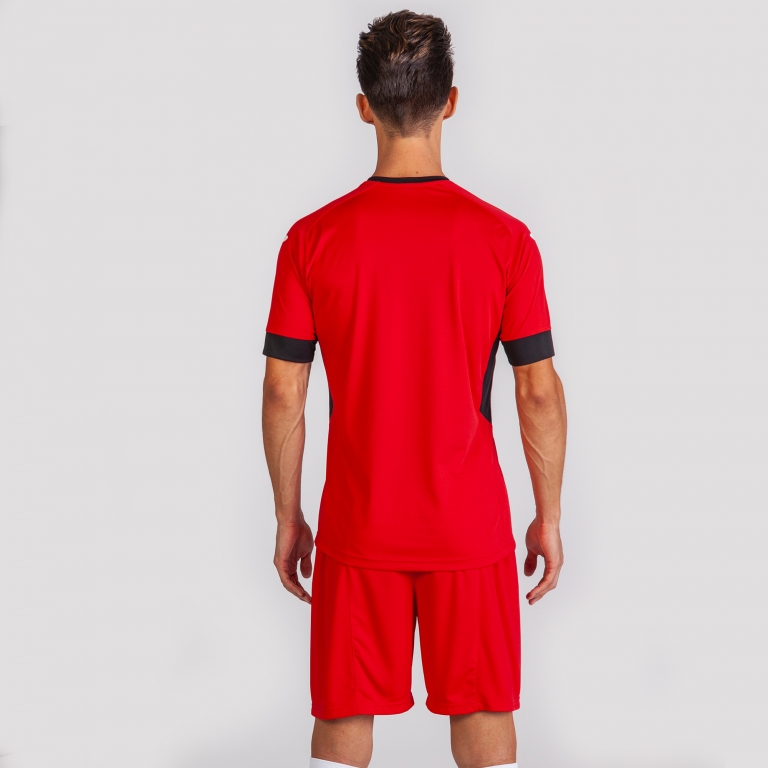 Set format din tricou si pantaloni scurti. Tricou guler rotund, care se evidentiaza prin o culoare contranstanta pe umeri.