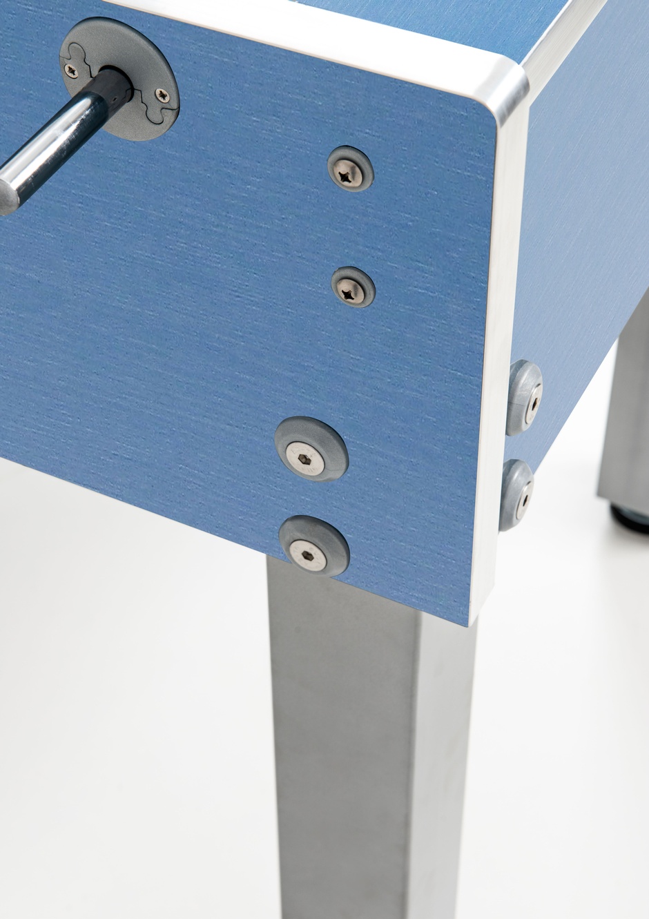 Noul G-500 Weatherproof albastru prezinta detalii argintii si picioare reglabile pe inaltime, pentru un teren de joc perfect plat pe orice suprafata
