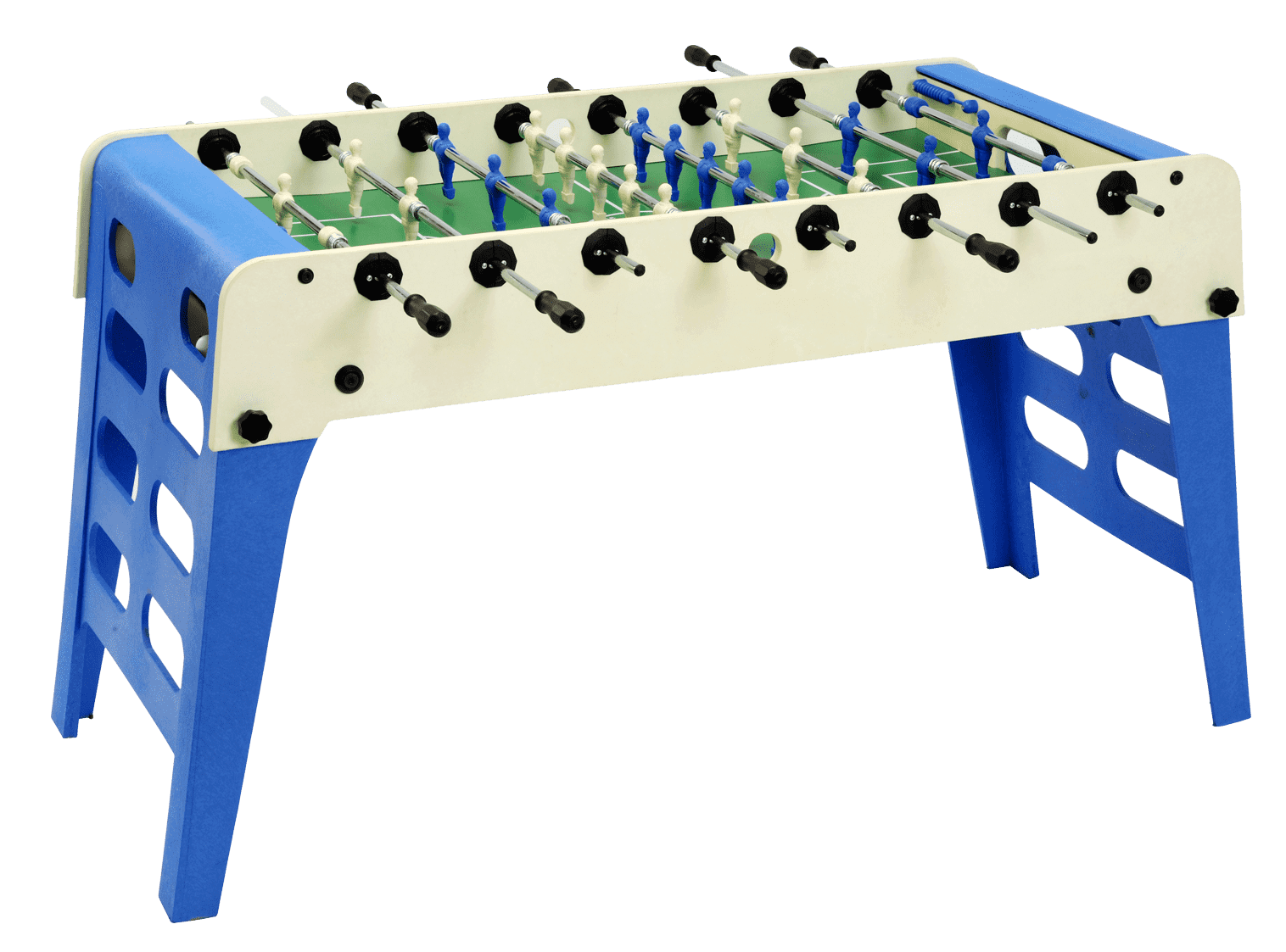 Masa este realizată dintr-un amestec deosebit de materiale plastice și fibră de sticlă pentru a-i crește rezistența, suprafața de joc este serigrafiată cu cerneluri care nu se estompează, în timp ce detaliile metalice sunt supuse unui tratament anti-rugină.