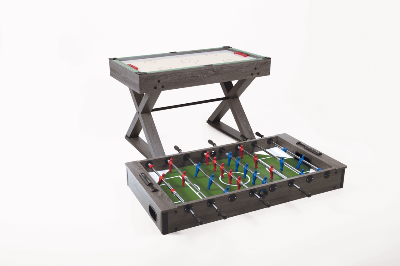 Masa Multigame multifunctionala ce include 9 jocuri: fotbal, tenis de masa, hochey, biliard, dame, sah, table, sah, bowling si shuffleboard.