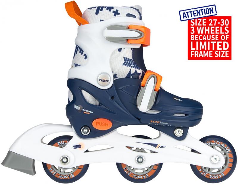 | Caracteristici | • reglabil în 4 dimensiuni prin apsarea butonului la clcâi • 2x blocare rapid dubl • soseta interior din poliamid detaabila cu cptueal din poliester • asiu PP • Roi din poliester 82A, dimensiune 63 x 24 mm • dimensiune 27/30 cu 3 roi, alte dimensiuni cu 4 roi • ABEC 5 rulmeni cu bile • 1x frana TPR |