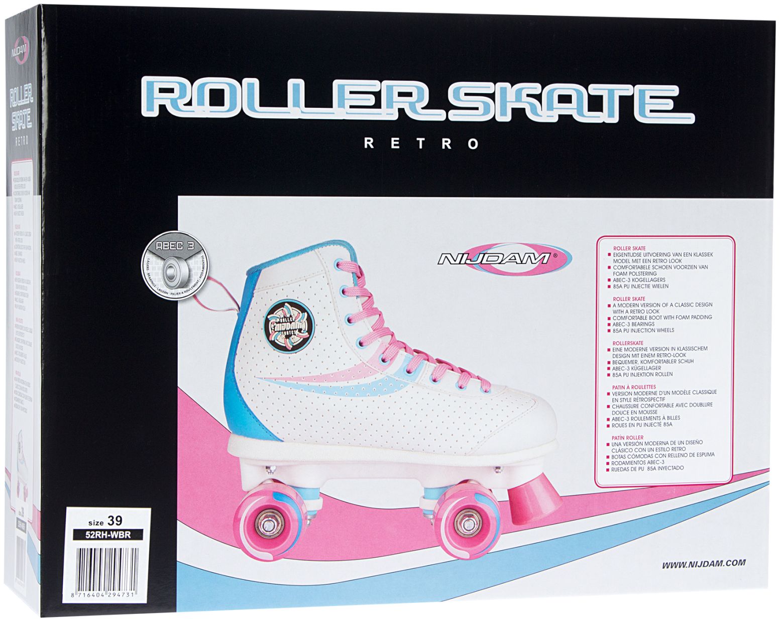 Patinajul cu role Retro Smash din Nijdam va va face remarcat! . Retro Smash este confectionat din piele de PVC, oferindu-i o forma potrivita. Perfect pentru o calatorie de-a lungul bulevardului. patine cu role la moda in aspect retro • cizme din piele din PVC / PVC perforate cu siret • sasiu PP • roti PU, dimensiune 54 x 32 mm • rulmenti cu bile ABEC 3 • franeTPU 2x