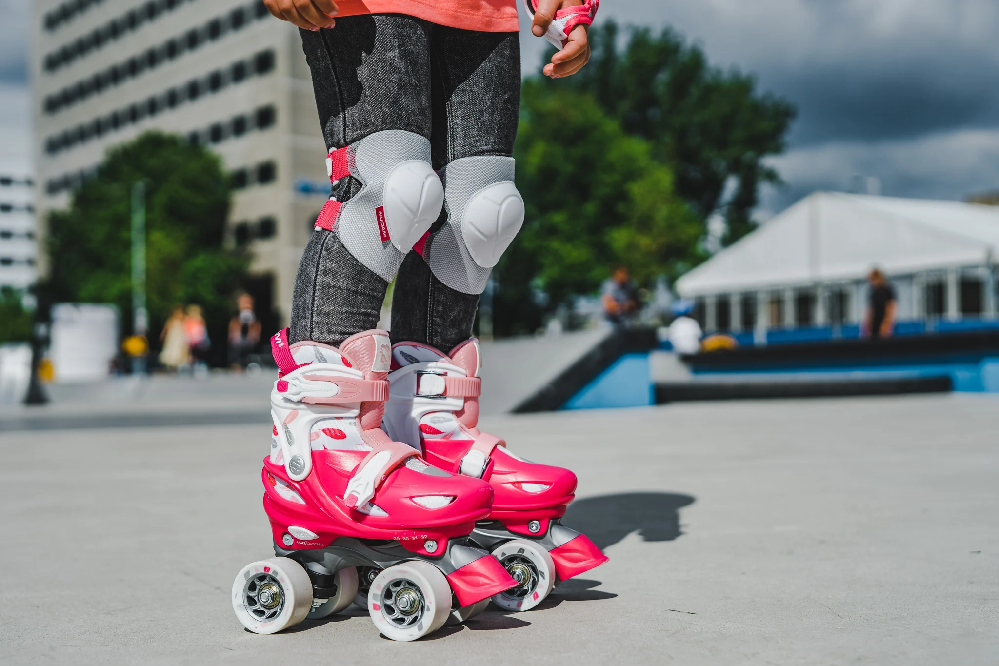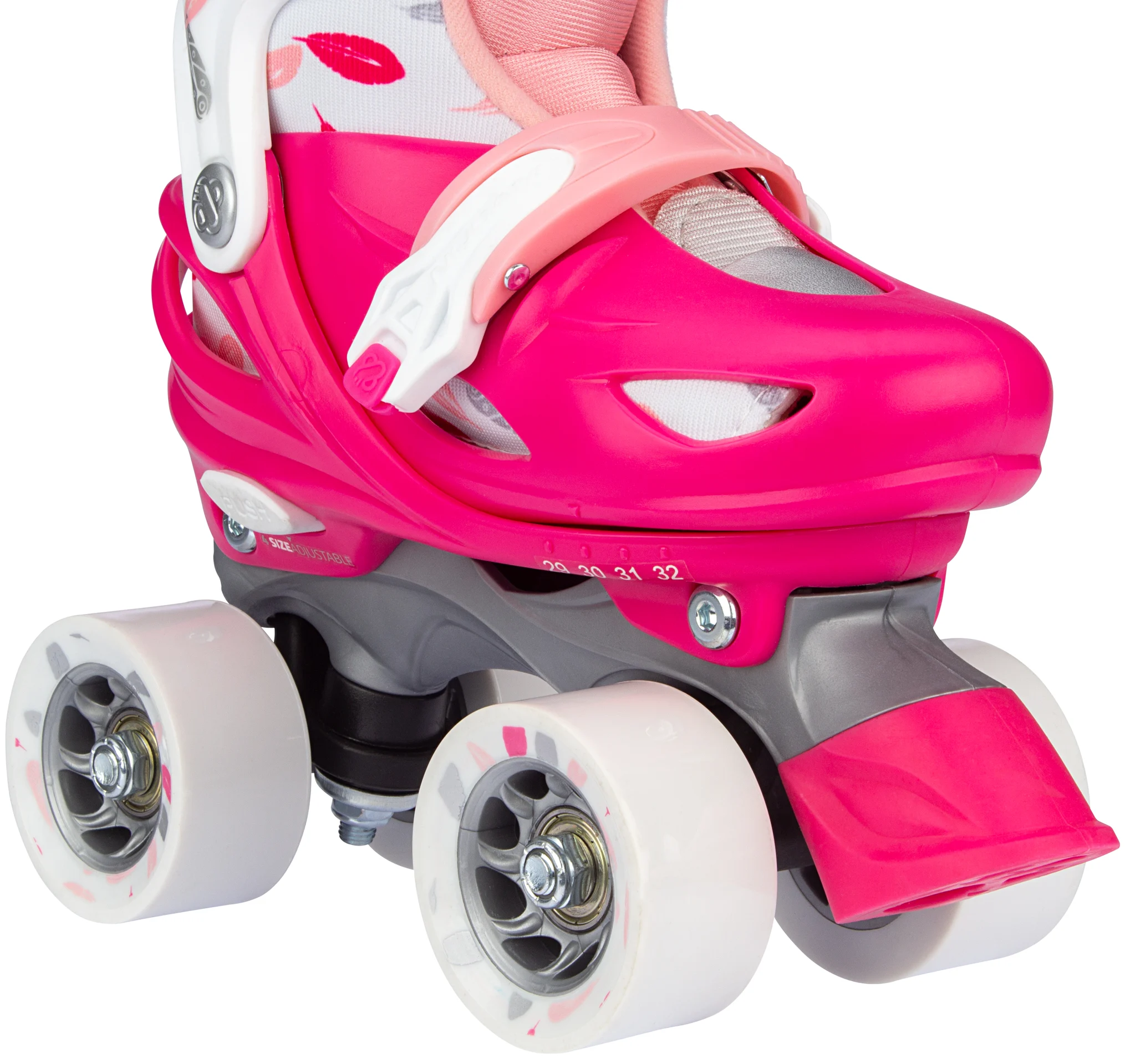 | Caracteristici | • Dimensiune reglabilă la 4 mărimi prin mecanism cu buton • Închidere rapidă • Max. greutate: 60 kg • Carcasă exterioară: PE cu absorbție a șocurilor de înaltă densitate • Pantof interior: poliester confortabil, EVA și spumă perlă • Șasiu: PP rezistent la impact • Roți: PU 82A, mărimea 25-28: 54 x 32 mm, dimensiunile 29-32 și 33-362 mm: 33-362 mm. 5 carbon • Frână: TPR 85A • Scule: 1 sculă cheie |