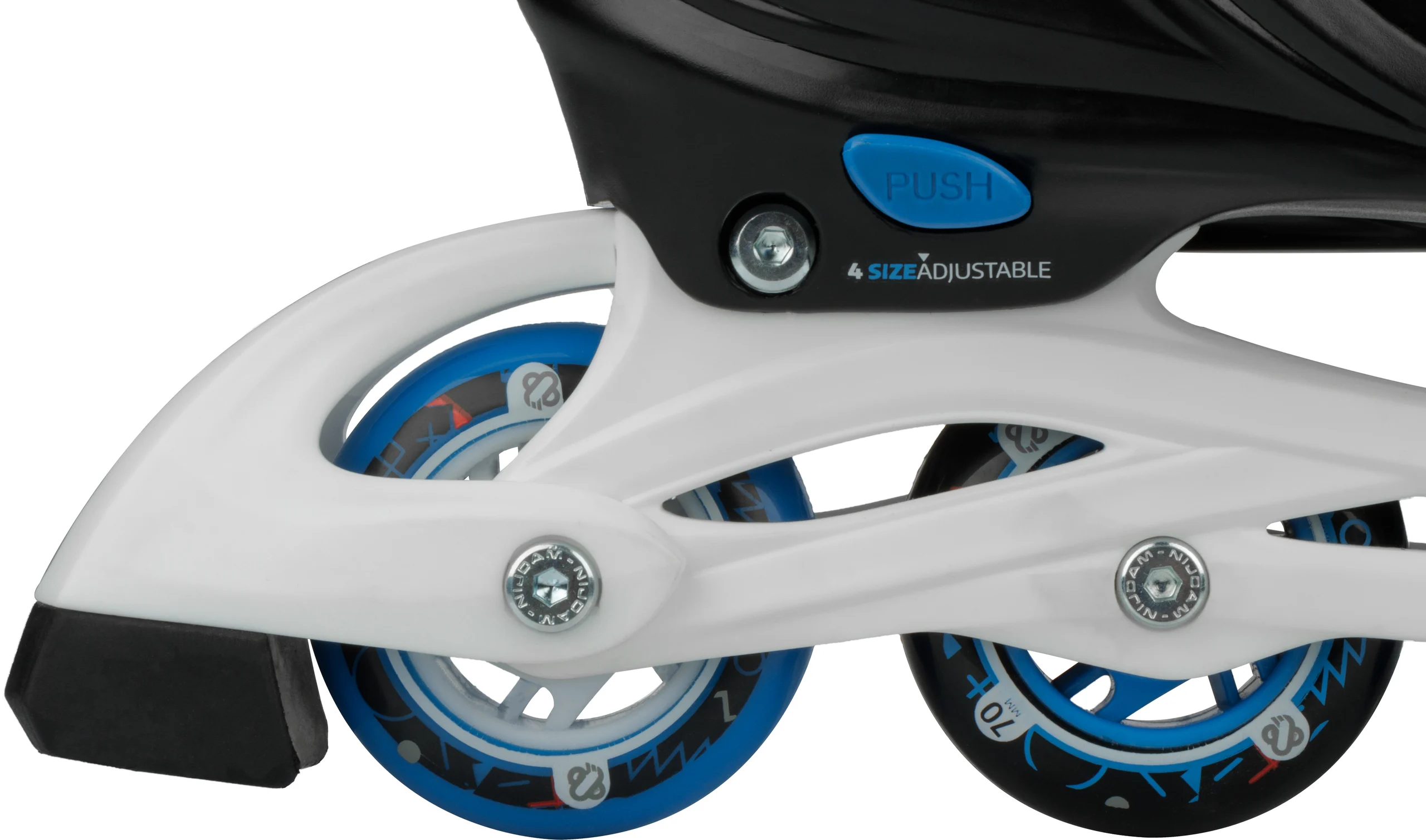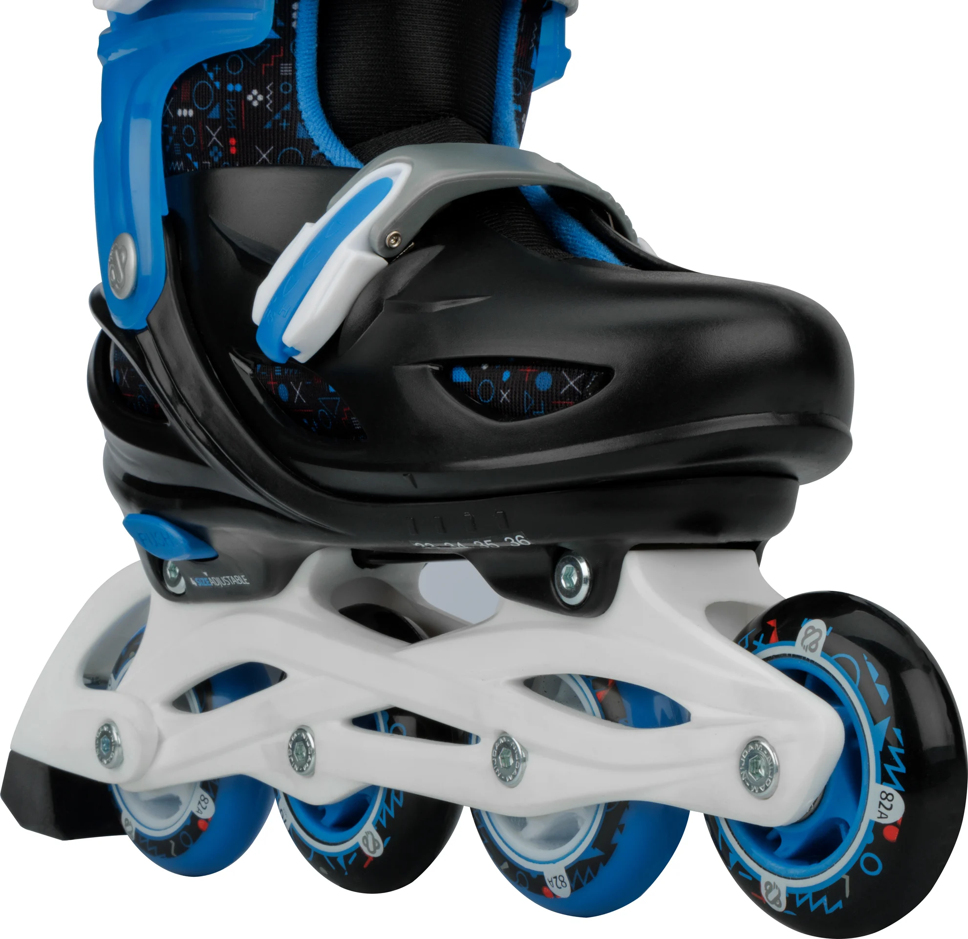 | Caracteristici | • Dimensiune reglabilă la 4 mărimi prin mecanism cu buton • Închidere cu blocare rapidă • Carcasă exterioară: PE de înaltă densitate cu absorbție a șocurilor • Pantof interior: poliester confortabil, EVA și spumă perlată • Șasiu: PP rezistent la impact • Roți: PU turnat 82A, mărime 25-28: 64,3 x 222,3 mm. și 37-40: 70 x 22 mm • Rulmenți: carbon ABEC 5 sigilați • Frână: TPR 85A • Unelte: 2 chei hexagonale incluse |