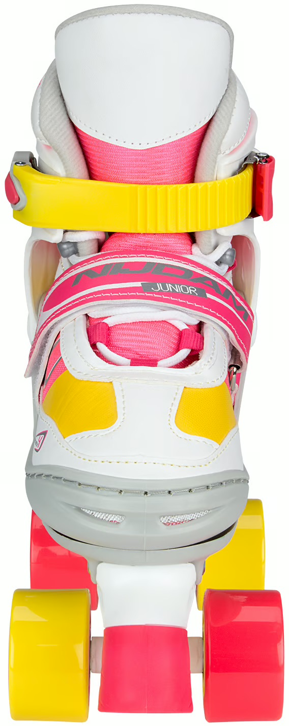 | Caracteristici | • cizme din plasă de poliester/piele PVC semimoale cu șireturi • reglabilă în 4 mărimi prin apăsarea butonului la călcâi • curea dublă de blocare rapidă, cu bandă velcro • TPE gleznă, călcâi și vârf • Șasiu PP • Roți PVC 90A, dimensiune 52 x 32 mm • ABEC cu 3 opritoare cu bile TPR |