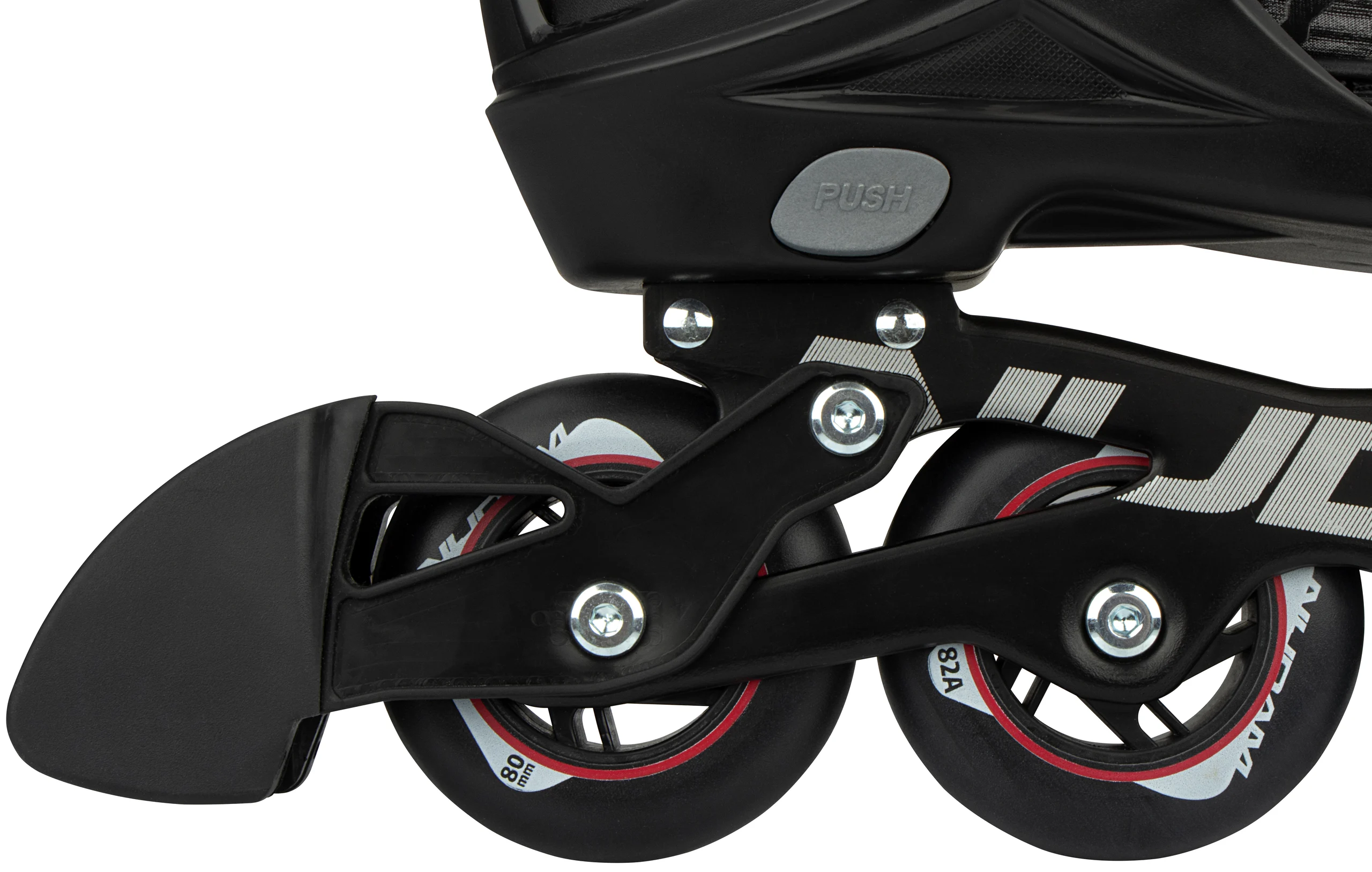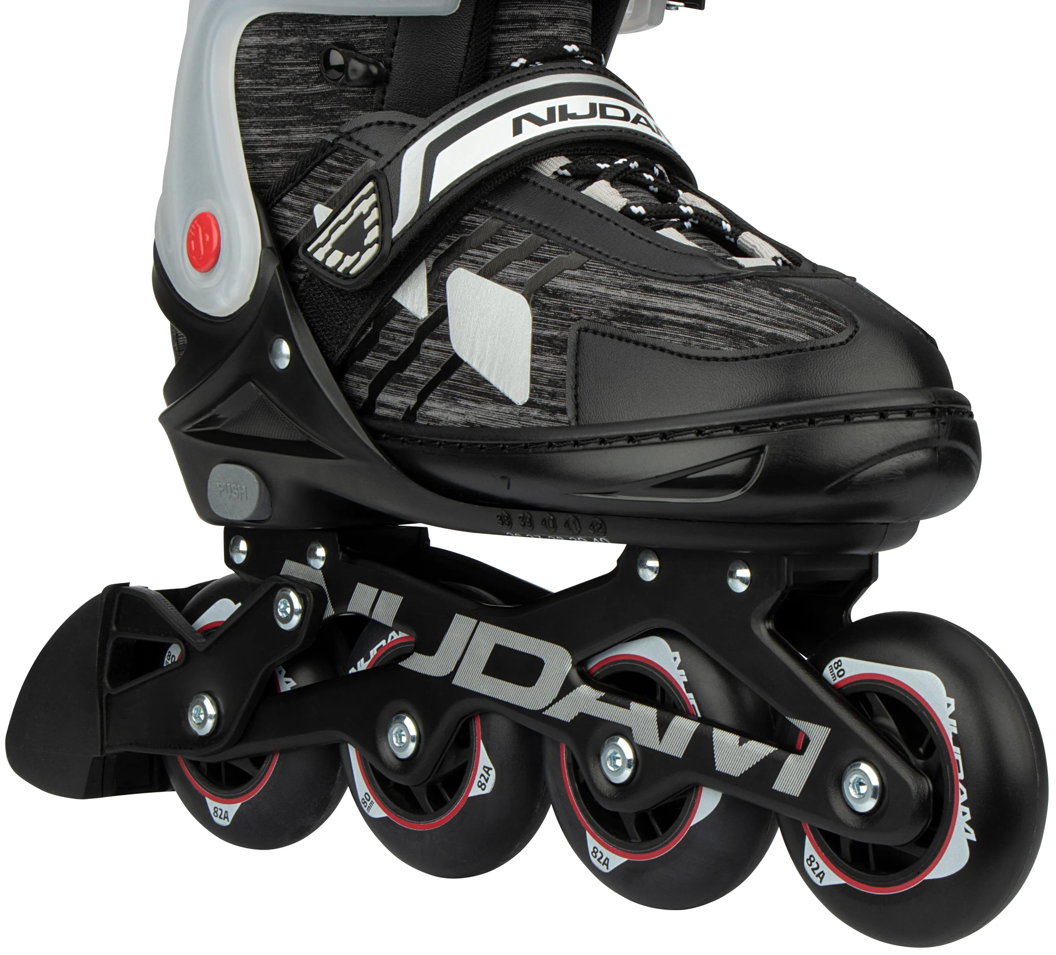 | Caracteristici | • Mărime reglabilă la 5 mărimi prin intermediul mecanismului cu buton • Închidere rapidă cu curele de putere din piele PU și șireturi • Carcasă exterioară: PE de înaltă densitate care absoarbe șocurile • Pantof interior: poliester confortabil, EVA, spumă de perle și inserție moale de lycra • Șasiu: aluminiu de mare impact ștanțat • Roți: 80 x 24 mm PU turnat • Rulmenți: etanșați ABEC 7 semi-crom • Frână: TPR 85A • Unelte: 2 chei hexagonale incluse |