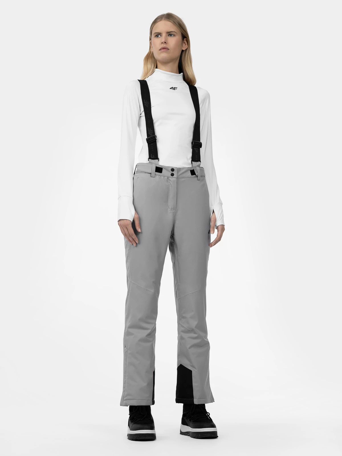 Pantalonii sunt dotați cu bretele cu un element din silicon. De aceea nu se vor deplasa chiar în timpul celor mai intensive activități pe pârtie. Talia ușor înaltă îți va acoperi spatele.