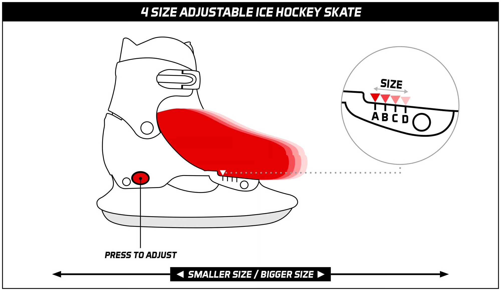 • ajustabilă la 4 mărimi prin apăsarea butonului de la călcâi