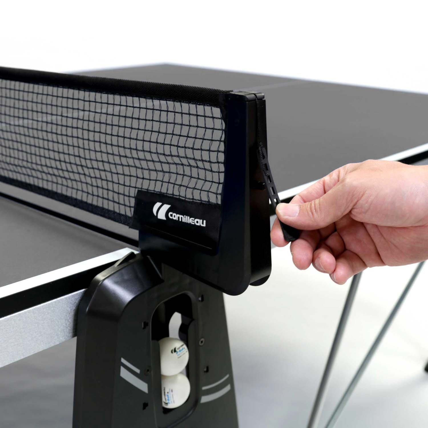 Masa de tenis Cornilleau 300 Indoor combină calitatea excelentă de respingere a plăcilor de joc din PAL cu robustețea inspirată de mesele de exterior. Ideal pentru cei care doresc să practice tenis de masă în mod regulat, este potrivit pentru toate profilurile de jucători cu ergonomia și nivelul optim de siguranță.